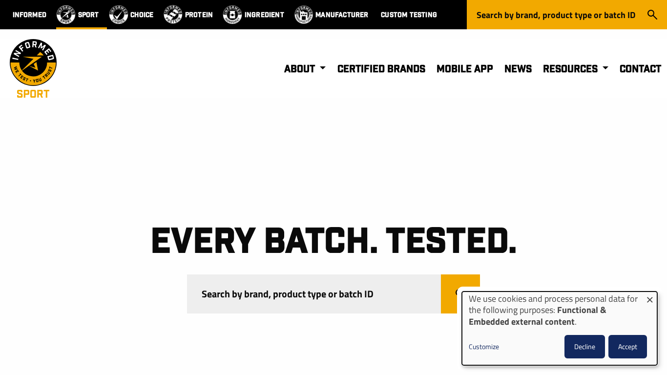 | SEO-описание | Informed Sport keeps your reputation safe with sports supplements certification -- every batch from our certified brands is tested for banned substances. |