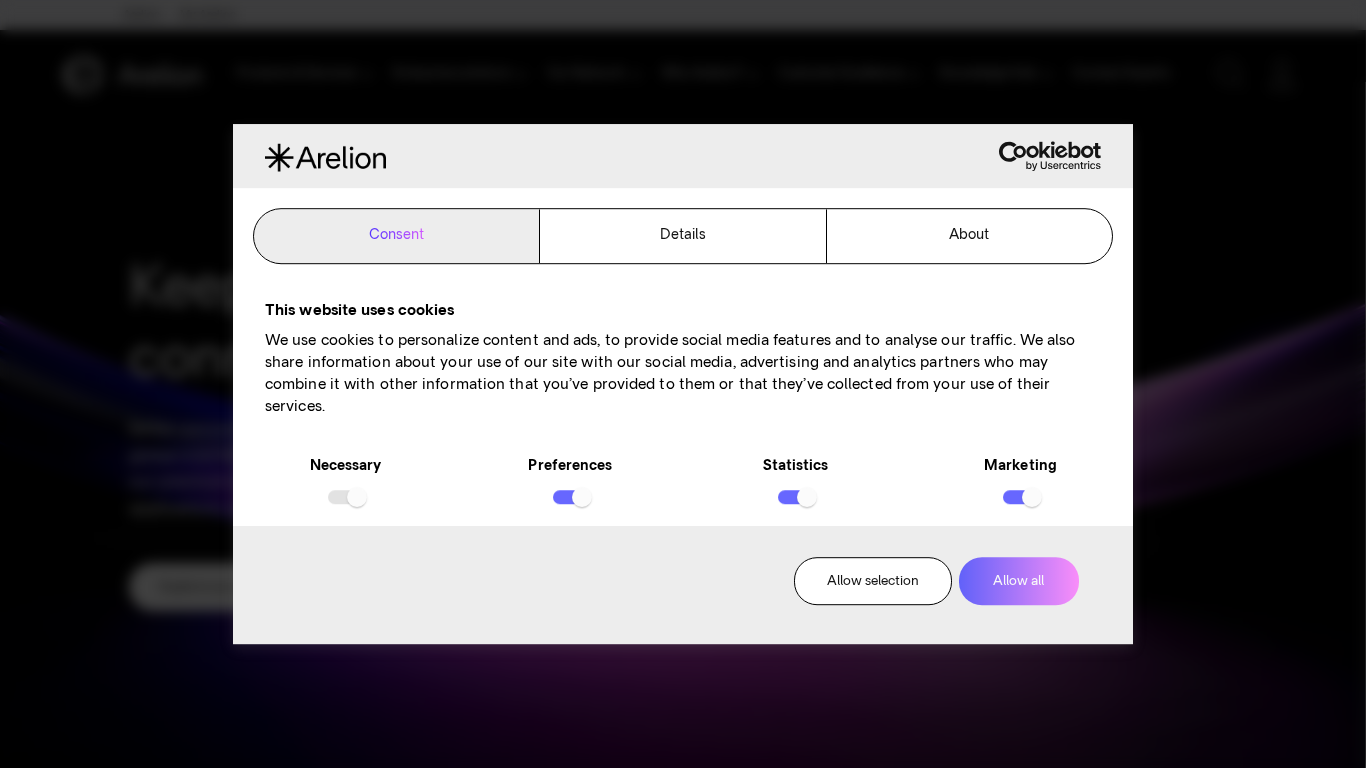 | AI-анализ | This website, titled "Arelion | Connecting a brighter future," is a platform that connects the world's largest network operators and content providers on a global fiber backbone. The description indicates that they carry the big ideas of tomorrow through their internet and fiber backbone services. Keywords associated with the website include "arelion," "wholesale connectivity," "internet backbone," "fiber backbone," "transport," "wavelengths," "IP," and "enterprise networking." The top words on the website are "the," "and," "maximum," "duration," "type," "cookie," "website," "this," "http," "for," "user," "with," "arelion," "used," "our," "more," "data," "what," and "local." The website uses cookies for various purposes such as personalization, social media features, and |