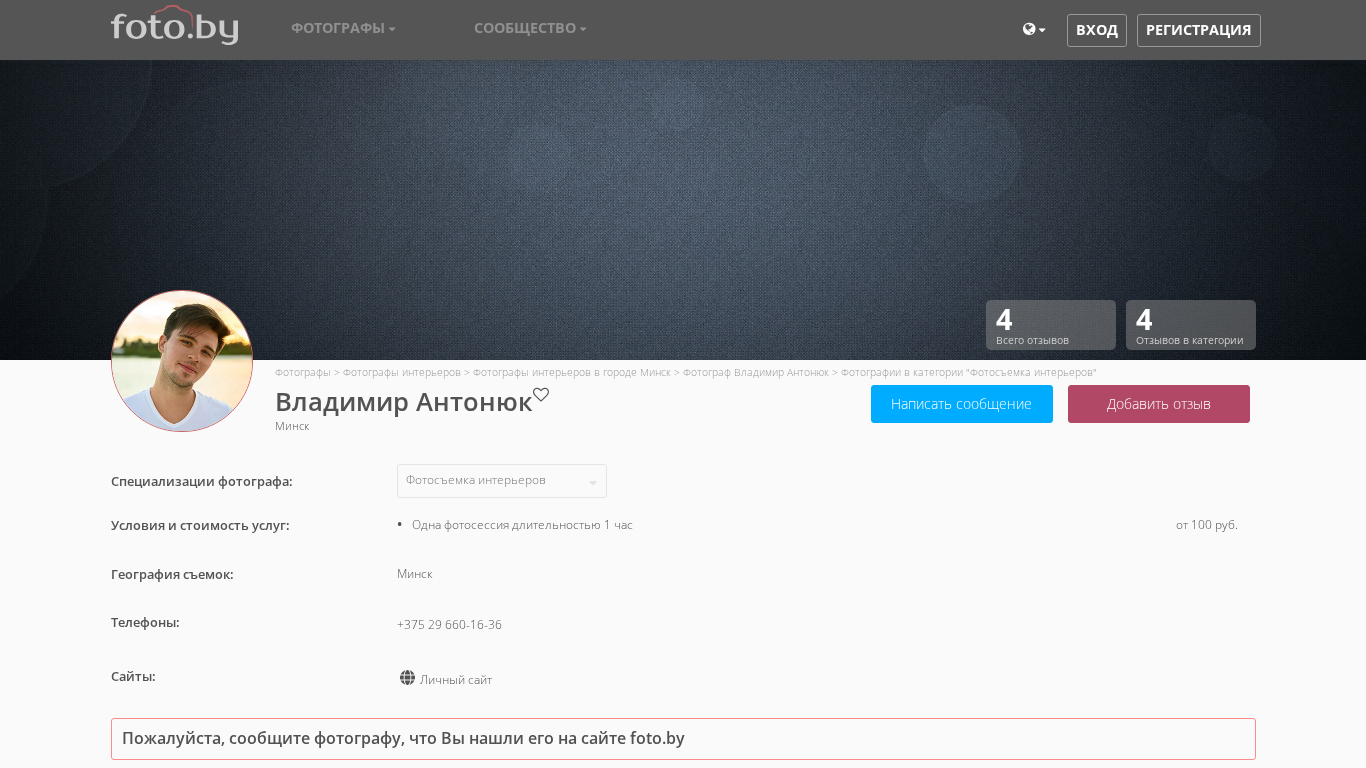 | SEO-описание | Фотографии в категории "Фотосъемка интерьеров". Сайт фотографа Владимир Антонюк. Я работаю как фотограф интерьеров в городах Минск |