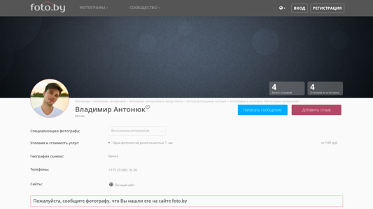 | AI-анализ | The website is for photographer Vladimir Antoniuk based in Minsk, Belarus. The main focus of the site is on interior photography, as indicated by the title and the description tag. The website appears to be part of a larger photography community or catalog, as evidenced by the presence of a "community" section and various other photography categories. The photographer offers his services as an interior photographer in Minsk. No specific pricing or contact information is provided. The site includes a portfolio of his work and an option for users to leave reviews. The site is part of the foto.by domain. |