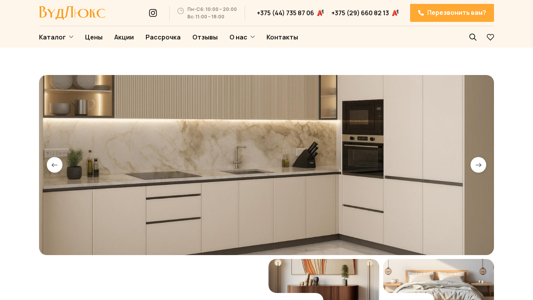 | AI-анализ | This website, titled "Главная - Вудлюкс," is a catalog for various types of furniture, including kitchens, cabinets, office furniture, and beds. The keywords associated with the site include "мебель," meaning "furniture" in Russian, and specific items such as "кухни," "шкафы," and "кровати." The site also offers information on prices, discounts, and financing options, as well as customer reviews and contact information. The production and certifications of the company are also mentioned. The site is available for purchase and browsing Monday through Saturday from 10:00 to 20:00 and Sundays from 11:00 to 18:00, with contact numbers provided for inquiries. The site allows users to add items to a wishlist and leave a request for a quote. The data suggests that |