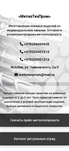 | AI-анализ | --- The web project "МетизТехПром" is a website dedicated to the production and sale of custom-made metal products. The business offers both wholesale and retail sales of metal products, as well as the creation of various metal constructions. The company specializes in the manufacturing of gates and grilles, fences, and other metal structures. The website provides information about the different types of gates and grilles available, including garage doors, entry gates, and garden gates. The company also offers a wide range of fencing options, from budget-friendly to high-end designs. The website includes a price list for various types of metal products, including fencing materials, tubes, and artistic metalwork. The website contact information includes phone numbers and an email address. The company provides a guarantee on its metal products for a period ranging from 2 to 5 years, depending on the product's intended use |