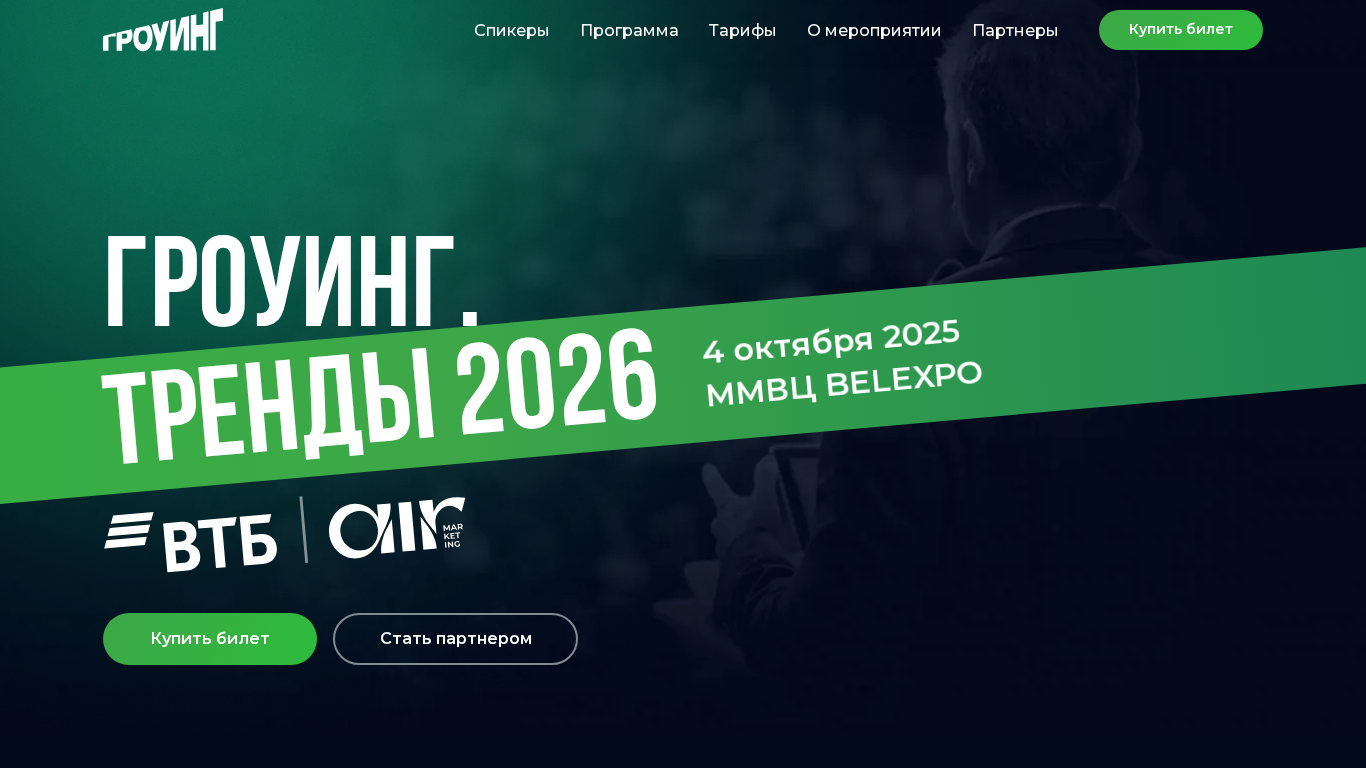 | SEO-описание | Гроуинг — главная конференция про быстрый рост в бизнесе и карьере. 4 октября 2025 года в BelExpo Минск 8 топовых спикеров-практиков раскроют главные тренды 2026 в маркетинге, менеджменте, финансах, продажах и HR. 10 часов нетворкинга. |