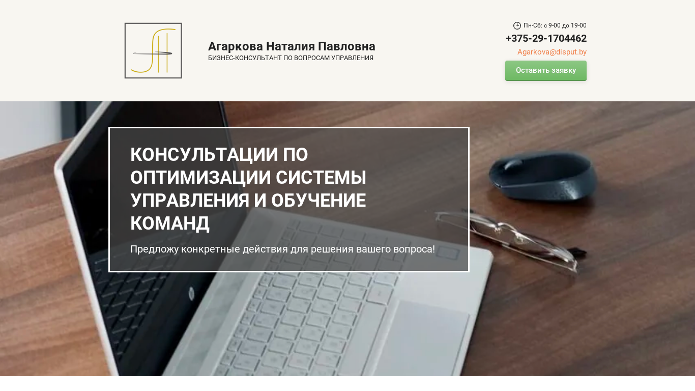 | Название / Заголовок | Организационный консультант, бизнес-тренер Агаркова Наталия Павловна | Минск |