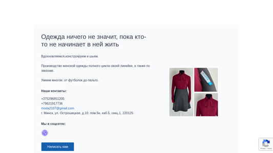 | SEO-описание | Вдохновляемся,конструируем и шьем. Производство женской одежды полного цикла своей линейки, а также по заказам. Умеем многое: от футболок до пальто. |