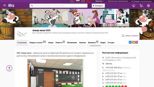 | AI-анализ | The web project "Ankar-imek OOO" focuses on providing weights and weighing equipment, as well as general-purpose laboratory equipment and appliances for agricultural production cooperatives. The organization's address is 223051, , Kolodishchinsky S/S, Kolodishchi A, 68/1. They offer diagnostic and repair services for milk analyzers from various brands such as Ekomilk, AKM, and Laktan, and provide services for weighing equipment, thermostats, and laboratory equipment from Mettler Toledo and other brands. Additionally, they offer veterinary products and services, including veterinary preparations and consultations on dairy cow health and milk production techniques. The company also runs a mobile laboratory. Their product catalog includes laboratory equipment and appliances, pilot and industrial equipment, express tests, and weighing scales. |