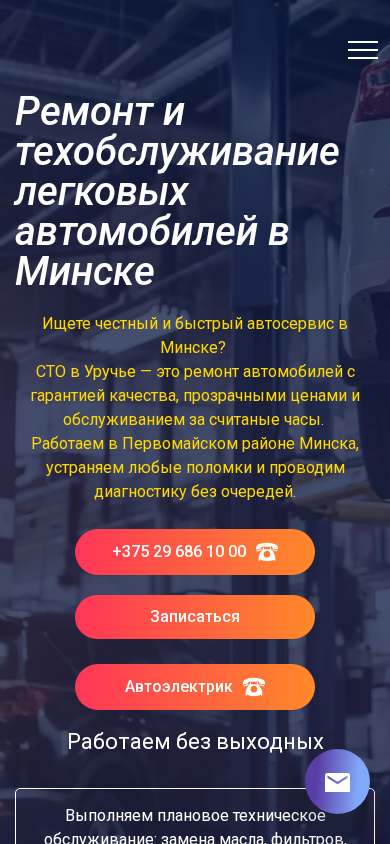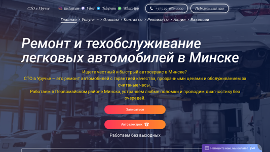 | SEO-описание | СТО в Уручье (Минск): ремонт тормозной, выхлопной, системы охлаждения и подвески. Быстро, с гарантией и без переплат. Рассрочка до 3 месяцев! |