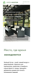 AI-анализ | The portal is a website for booking wooden cabins in a forest for relaxation and vacation. The title and description are blank, but the keywords indicate that the website is about booking a cabin, a forest vacation, and contact information. The top words suggest that the website is about a forest retreat for peace and relaxation, and specifically mentions "Green Hootor," which may be the name of the business or location. The website offers different types of cabins for rent, with varying prices based on the day of the week. The contact information is provided, including a phone number and location on a map. The website is designed and hosted on Tilda. |