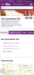 | AI-анализ | The website is a Belarusian business organization named Автотрансимпэкс OОО, located in Минск, Глаголева, 39. The company specializes in the production of tents, tent structures, mobile and modular pavilions, interior elements, tents for boats, and tents for trailers and semi-trailers, as well as auto tents for cargo vehicles. The website provides a company address, phone numbers, and a map scheme for visiting. The site is categorized under the section 'Tents, covers, awnings' in the iBiz search engine and also under 'Tents, covers, awnings in Minsk'. |
