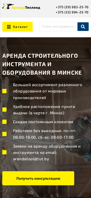 | SEO-описание | Аренда строительного инструмента и оборудования в Минске. Широкий выбор качественного оборудования от ведущих мировых брендов. |
