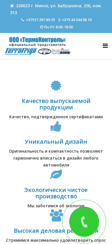 | Ключевые слова | ООО ТермоКонтроль представитель ТеrraFrigo цена транспортные холодильные холодильно-обогревательные установки автокондиционеры холодильно-отопительное оборудование |