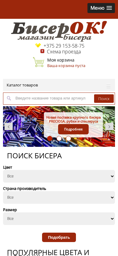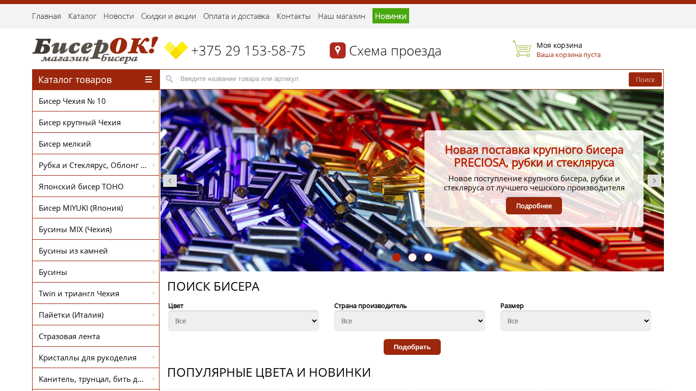 | SEO-описание | Специализированный магазин японского бисера TOHO и Miyuki, чешского бисера Preciosa по минимальным ценам. Фурнитура для бижутерии. Итальянские пайетки. Действующий магазин в центре города и оперативная доставка во все регионы Беларуси. |