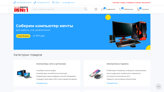 | SEO-описание | Компьютеры №1 это магазин компьютерной техники и аксессуаров, расположенный в городе Калинковичи. Каталог товаров включает продукцию Apple, ноутбуки, мониторы, компьютерные комплектующие, звуковые системы, сетевое оборудование, мобильные телефоны и прочие цифровые устройства от различных производителей |