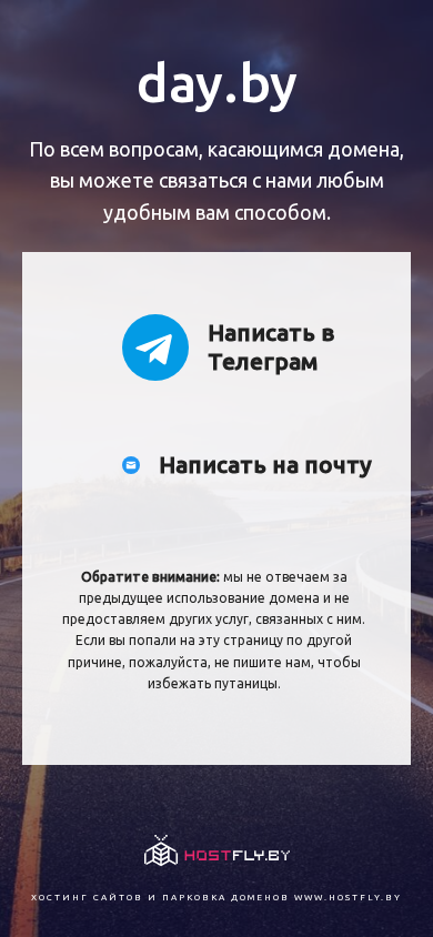 | AI-анализ | The web project day.by is currently for sale. All inquiries regarding the domain can be directed to the hosting and domain parking service Hostfly. Please note that we do not respond to queries concerning the previous use of the domain or other related services. If you arrived at this page for a reason other than domain inquiry, kindly refrain from contacting us to avoid confusion. Hostfly is responsible for the hosting and domain parking of day.by. |