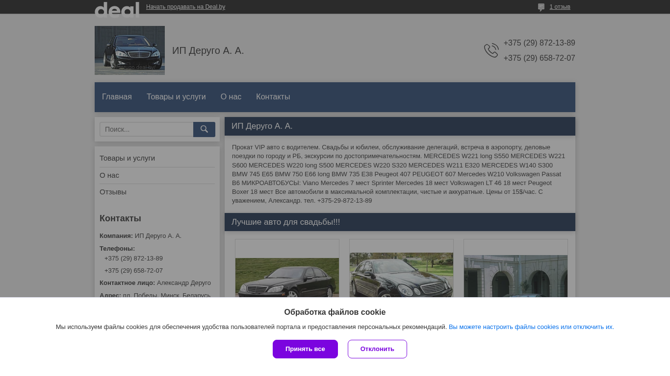 | AI-анализ | The web project "ИП Деруго А. А." is a business website that provides contact information, products, and services for the company "ИП Деруго А. А." The website uses the .BY top-level domain and is hosted on deal.by. The title of the website includes the name of the company. The description of the website mentions contacts, goods, and services. Keywords associated with the website include "375," "деруго," "mercedes," "bmw," "peugeot," and various contact numbers. The website utilizes Google Analytics and implements the clerkStats script for tracking user behavior. The website also includes schema markup for organization and search action potential actions. The contact details for the company include two phone numbers and an address. |