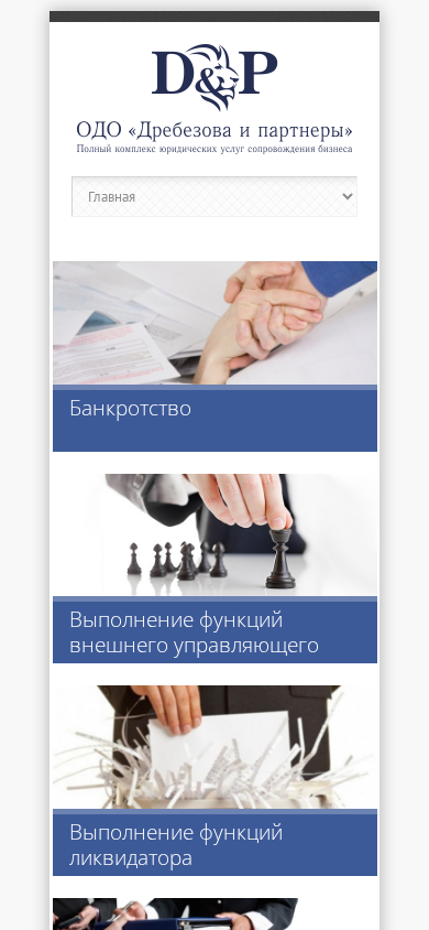 | AI-анализ | The website "Дребезова и Партнеры" (Drebezova and Partners) is a WordPress-based site featuring articles, contacts, and services related to liquidation, forensic investigation, financial management, and consulting for various business-related issues. The site includes sections for the company, contacts, and articles, with the main page displaying a brief introduction to the company's services and functions. The title of the site is "Дребезова и Партнеры" (Drebezova and Partners), and the description is in Russian. Keywords associated with the site include 'выполнение' (execution), 'функций' (functions), 'контакты' (contacts), 'дребезова' and 'партнеры' (Drebezova and Partners), 'ликвидатора' (liquidator), |