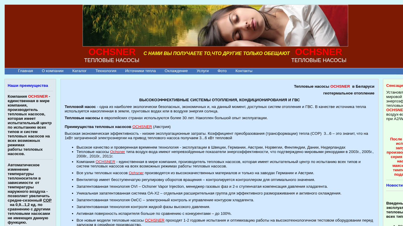 | SEO-описание | Продажа, монтаж, сервис тепловых насосов OCHSNER. Тепловые насосы для дома и производства. Геотермальное отопление. |