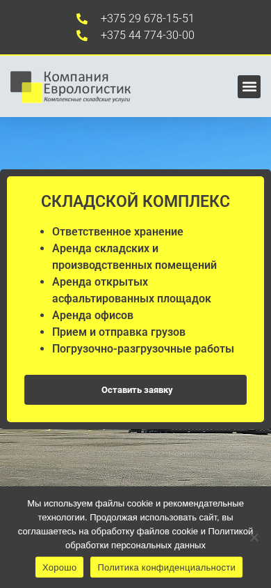 | AI-анализ | This website is a warehouse complex belonging to the logistics company "Euroлогистик". It offers storage services for goods at affordable prices. The company has hundreds of satisfied clients and maintains clean and orderly warehouses. The contact number is +375 29 678-15-51. |