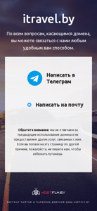 | AI-анализ | This online resource, itravel.by, is currently for sale. For any inquiries related to the domain, potential buyers can contact the website owners through Telegram, email, or by drawing attention to their message. It is important to note that the sellers do not assume responsibility for any previous usage of the domain or provide related services. If you arrived at this page by mistake, please do not write to the sellers to avoid confusion. Hosting services and domain parking are offered by Hostfly, which can be reached through contacting the sellers. |