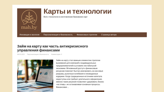 | AI-анализ | This online resource is dedicated to all technologies involved in the production of bank cards titled 'Карты и технологии'. The content includes topics on innovations and ecology, personalization and security, and financial strategies. The website discusses the importance of getting a loan on a card as a financial strategy during economic instability, and features articles on topics such as auto insurance using artificial intelligence and digital credit lines. With a focus on the latest financial trends and technologies, the website aims to provide readers with up-to-date information and insights. Key topics include 'займ на карту', 'страховка авто', and 'цифровые кредитные линии'. The website also includes a page for the author and a section for comments. |