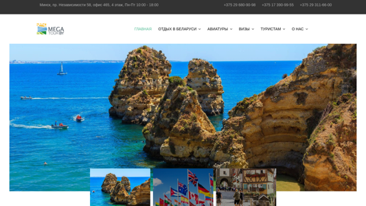 | AI-анализ | --- The portal Megatour.by is a Belarusian travel agency providing information and services related to various types of visas, accommodations, tours, and transfers in Belarus and abroad. The website offers search features for different types of travel arrangements, such as finding sanatoriums, organizing tours, and booking flights. It also provides news and FAQ sections, as well as information on visa requirements for various countries. The contact information for the office located in Minsk is provided, including phone numbers and opening hours. |
