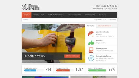 | AI-анализ | --- This online resource is the website of Melnica Reklamy, a company specializing in the production and application of outdoor advertising and business souvenirs in Minsk, Belarus. The site offers services such as vehicle advertising, removable advertising on magnets, and the production of metal business cards, flasks, and other promotional items. The company also provides services for the production of tablets, stickers, and light boxes. Contact information is provided, including a phone number and email address, as well as operating hours. The site includes sections for taxi decals, vehicle advertising, and custom-made business souvenirs, with various options and prices listed. The site is available Monday to Friday, 9:00am to 6:00pm. The domain is melnica.by. |