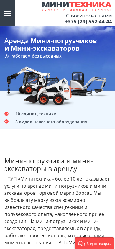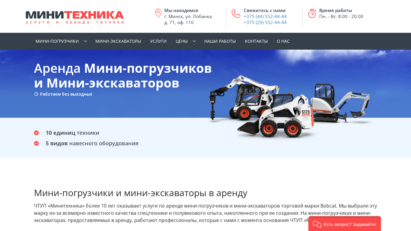 | SEO-описание | Услуги аренды мини-экскаваторов и мини-погрузчиков в Минске. ✅ Земляные, погрузочно-разгрузочные работы, уборка территорий. Низкие цены |