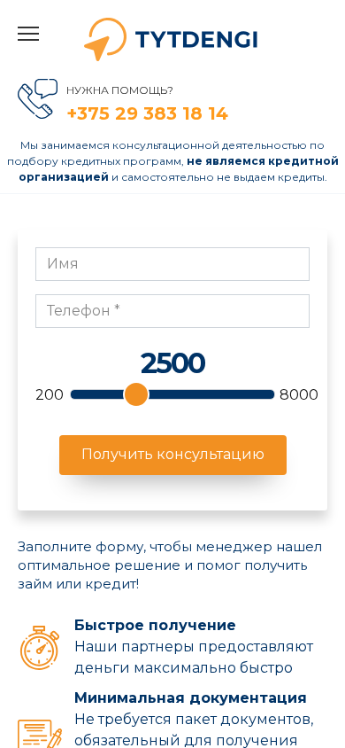 | Название / Заголовок | Деньги в долг в Беларуси, взять займ до 8000 BYN, деньги за 15 минут |