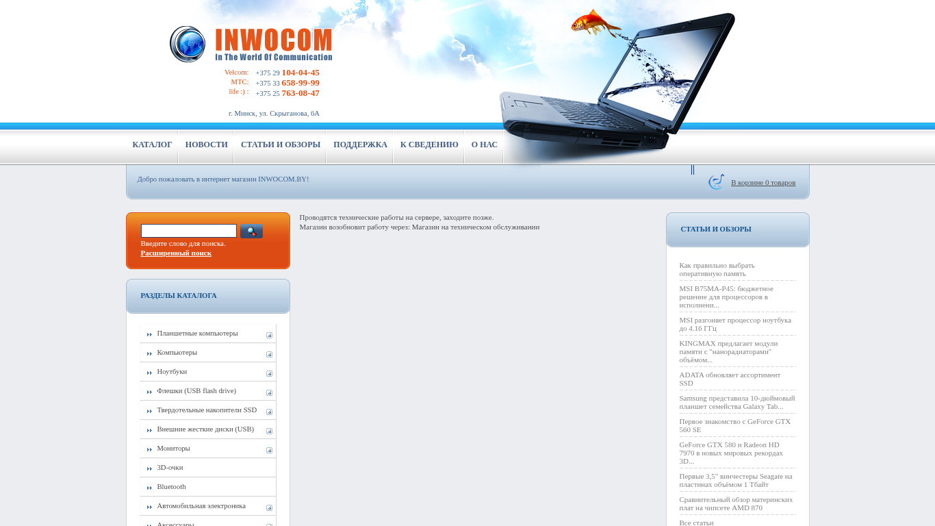 | AI-анализ | The portal is a computer store based in Minsk, Belarus, with phone numbers +375 29 104-04-45, +375 33 658-99-99, and +375 25 763-08-47. It offers a wide range of computer hardware and software, including CPUs from AMD and Intel, computer memory, USB and socket cables, Wi-Fi accessories, and various models of laptops, monitors, and other computing devices. The store also provides services such as support, delivery, and payment options including credit. The website includes sections for new arrivals, popular items, articles and reviews, and a price list. Brands and manufacturers are listed, and customers can contact the store for information. The website is INWOCOM.BY. |