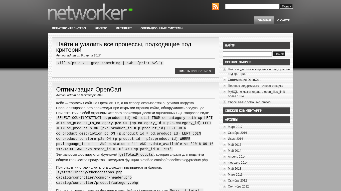 | AI-анализ | The web project networker.by focuses on providing articles and solutions related to web development, servers, and operating systems. The author of the project, identified as 'admin', frequently writes about optimizing OpenCart, a popular e-commerce platform, and troubleshooting various issues. The website features articles on topics such as MariDB and MySQL, product development, admin panels, and system administration. The content includes instructions on using commands, optimizing performance, and transferring email accounts. The website's design and functionality remain unchanged despite the improved performance. |