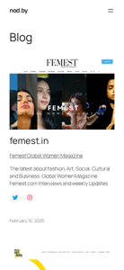 | AI-анализ | language: by The website nod.by is a blog featuring articles about various topics including fashion, art, social, cultural, and business. It is not clear if it is a standalone blog or part of a larger network. The website contains links to other websites, including femest.in, femest.com, activateperth.com.au, showponycreative.com.au, homegrown.co.in, and a WordPress blog. The title of the website is "nod.by" and it is written in the Belarusian language. |
