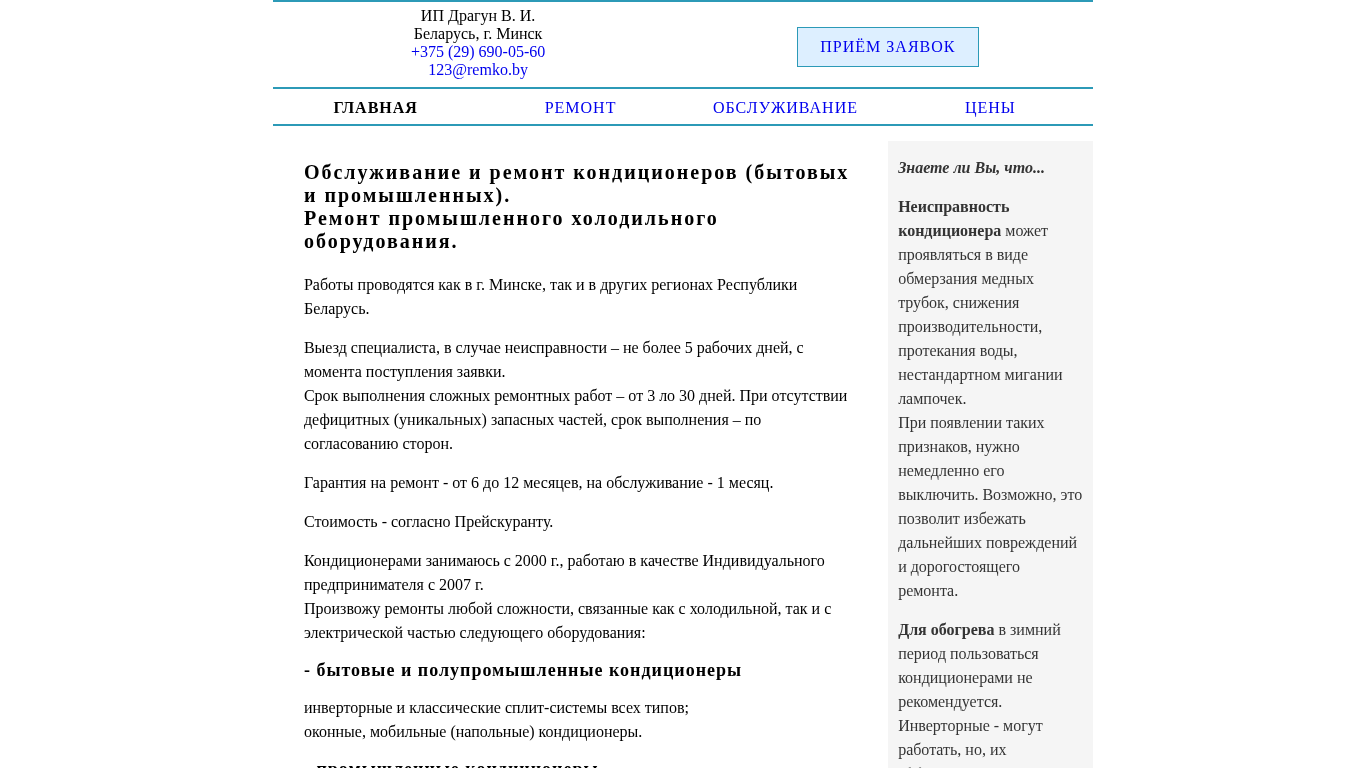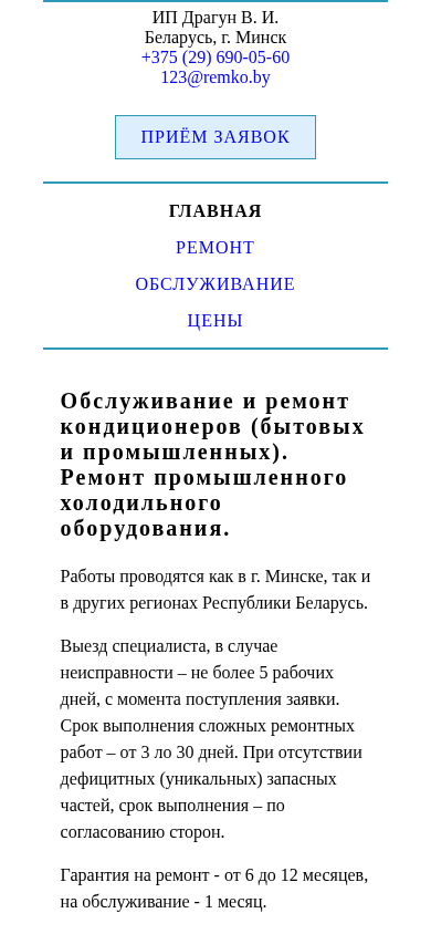| Ключевые слова | кондиционер ремонт обслуживание промышленный бытовой холодильный минск |
