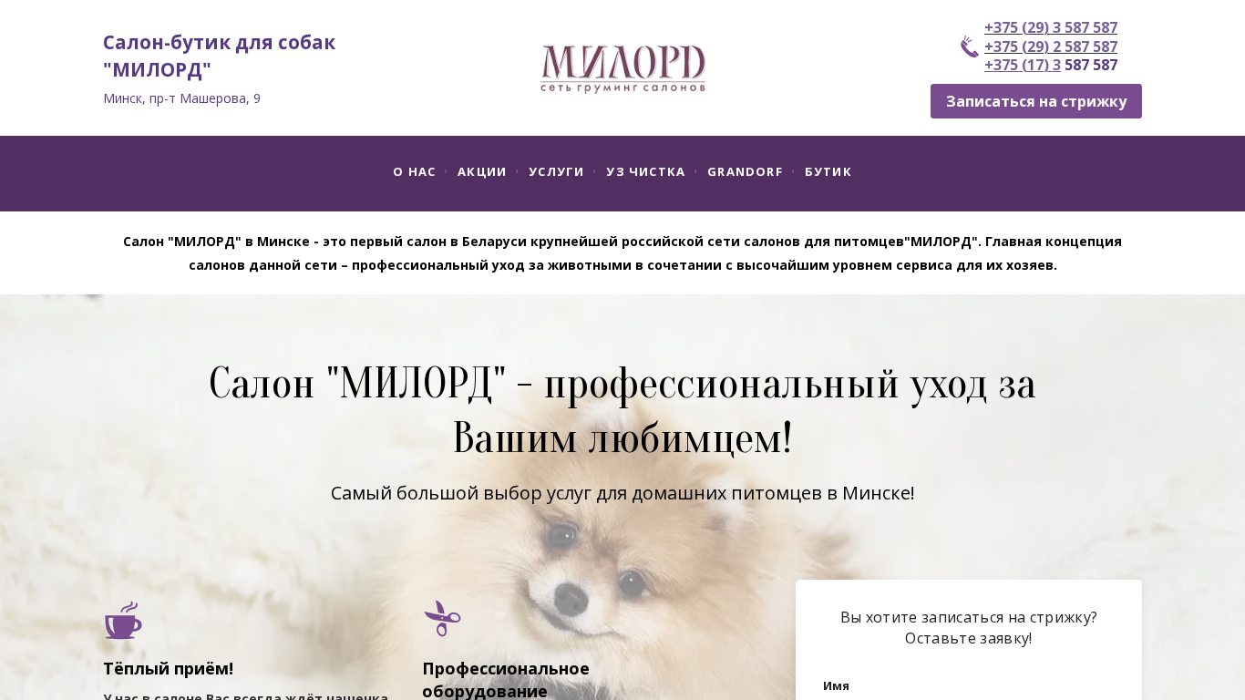 | Название / Заголовок | Салон-бутик для собак Милорд |