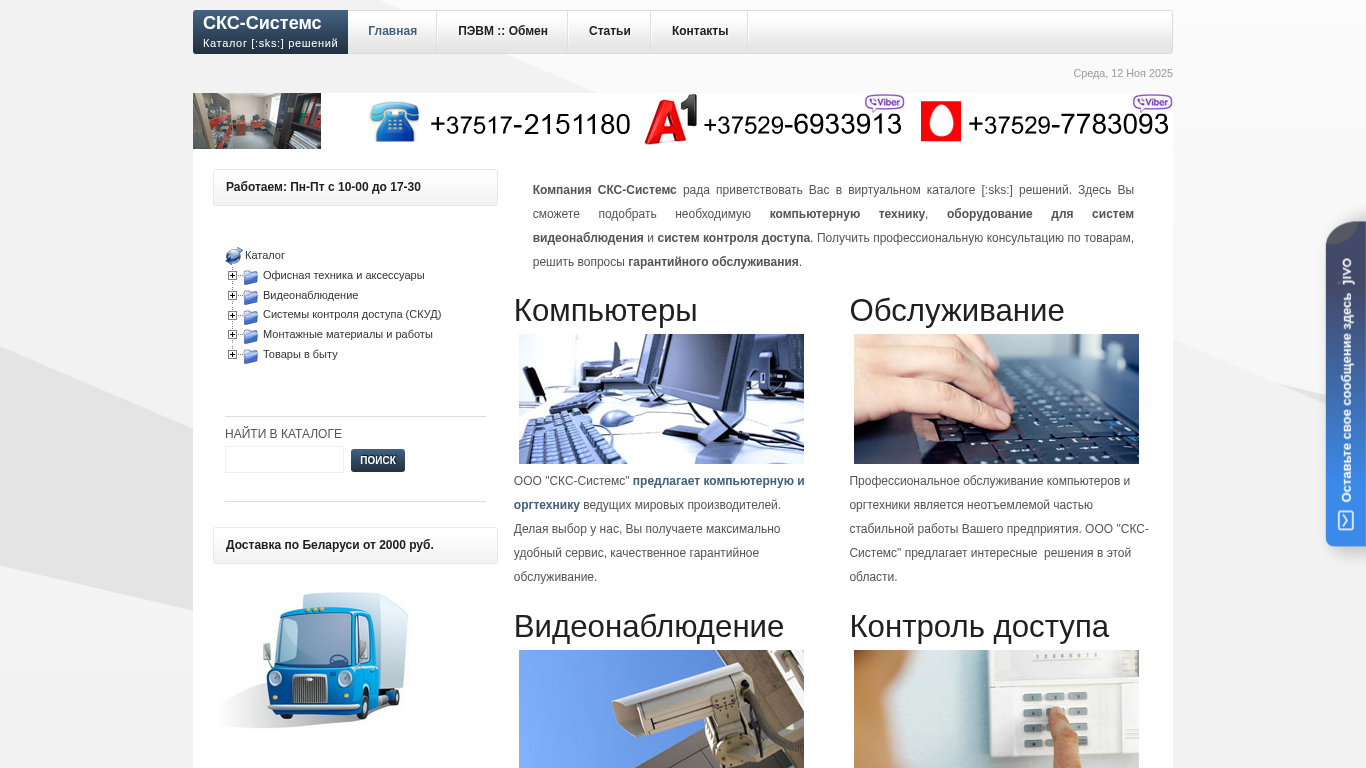 | Ключевые слова | Компьютеры Видеонаблюдение Контроль доступа Офисные решения Минск наличный безналичный расчет СКС-Системс |