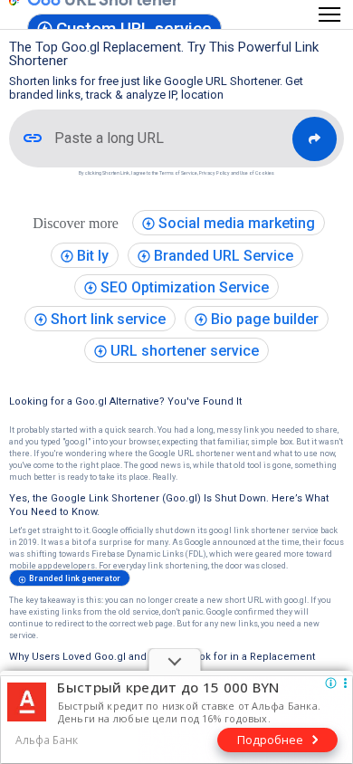 | SEO-описание | Missing the simplicity of the goo.gl link shortener? Get a Google-like link shortener that has advanced analytics and custom URL options |