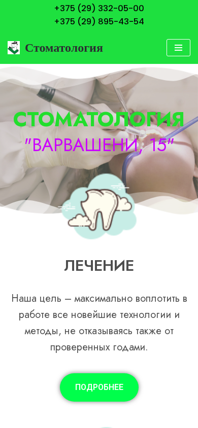| SEO-описание | Cтоматология "Варвашени, 15" в Минске - профессиональные врачи, качественные материалы, низкие цены. +375 (29) 332-05-00 |