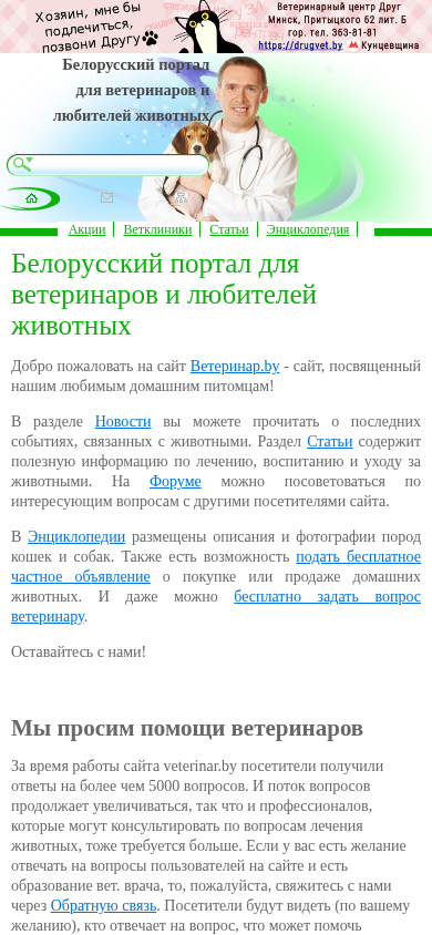 | Название / Заголовок | Ветеринар.by - Белорусский портал для ветеринаров и любителей животных - статьи, новости, вет. клиники |