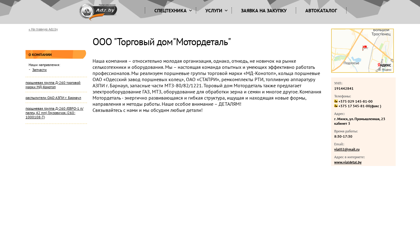 | Название / Заголовок | ООО "Торговый дом"Мотордеталь" |