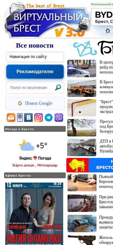 | Название / Заголовок | Виртуальный Брест - новости, информация, события, бизнес: портал города Бреста! |