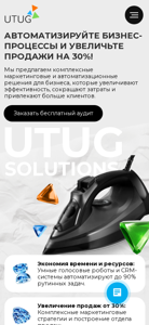 | AI-анализ | This website is for UTUG, a Belarusian company with the title "Утюжим ЛИДы" and the description "Автоматизируем бизнес-процессы и увеличиваем продажи" (Automate business processes and increase sales). The website contains the keywords "utug, solutions, компания, директор, ооо, все,которые, команды, разработка, продажи, решения, бизнеса, продаж, работа, нам, котрая, автоматизация, работать, благодарность, под". The top words include "utug" with 19 occurrences, "solutions" and "company" with 14 occurrences each, and "директор" and "команды" with 13 |