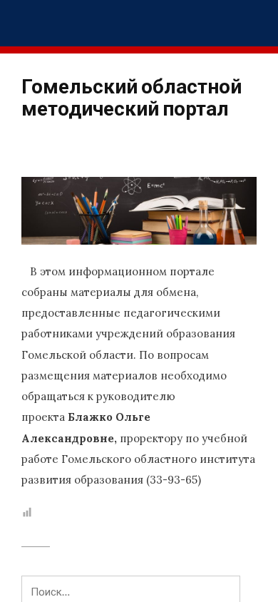 The web project "Gomeльский областной методический портал" is an informational platform that gathers and provides materials for exchange among pedagogical workers of educational institutions in the Homel region of Belarus. The website contains sections dedicated to various subjects and educational levels, including early childhood education, primary and secondary education, Russian and Belarusian languages and literature, mathematics, physics, and more. Users can find resources for teaching and learning, as well as participate in a permanent seminar. The website is maintained by Olga Blazhko, the deputy rector for academic affairs at the Homel Oblast Institute for the Development of Education. Copyright © 2025 . All rights reserved.