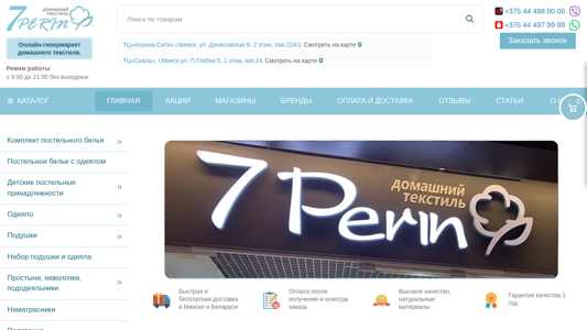 | SEO-описание | Интернет-магазин домашнего текстиля и постельного белья 7perin.by предлагает широкий ассортимент спальных постельных принадлежностей с бесплатной доставкой по Минску и РБ. |