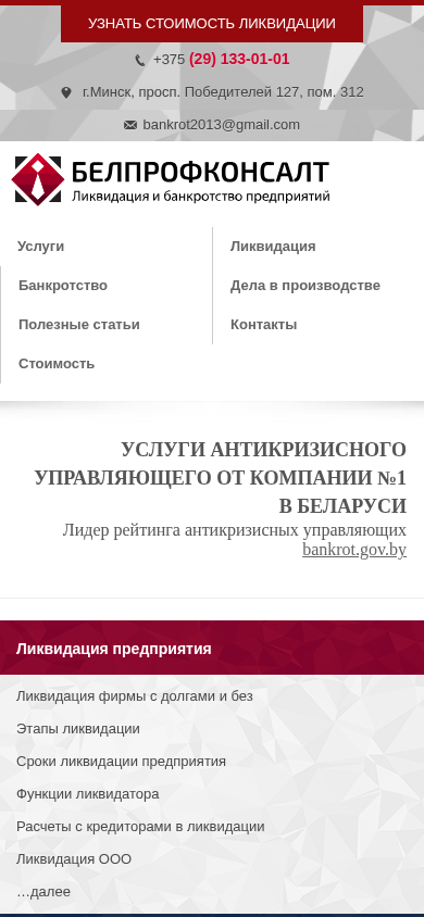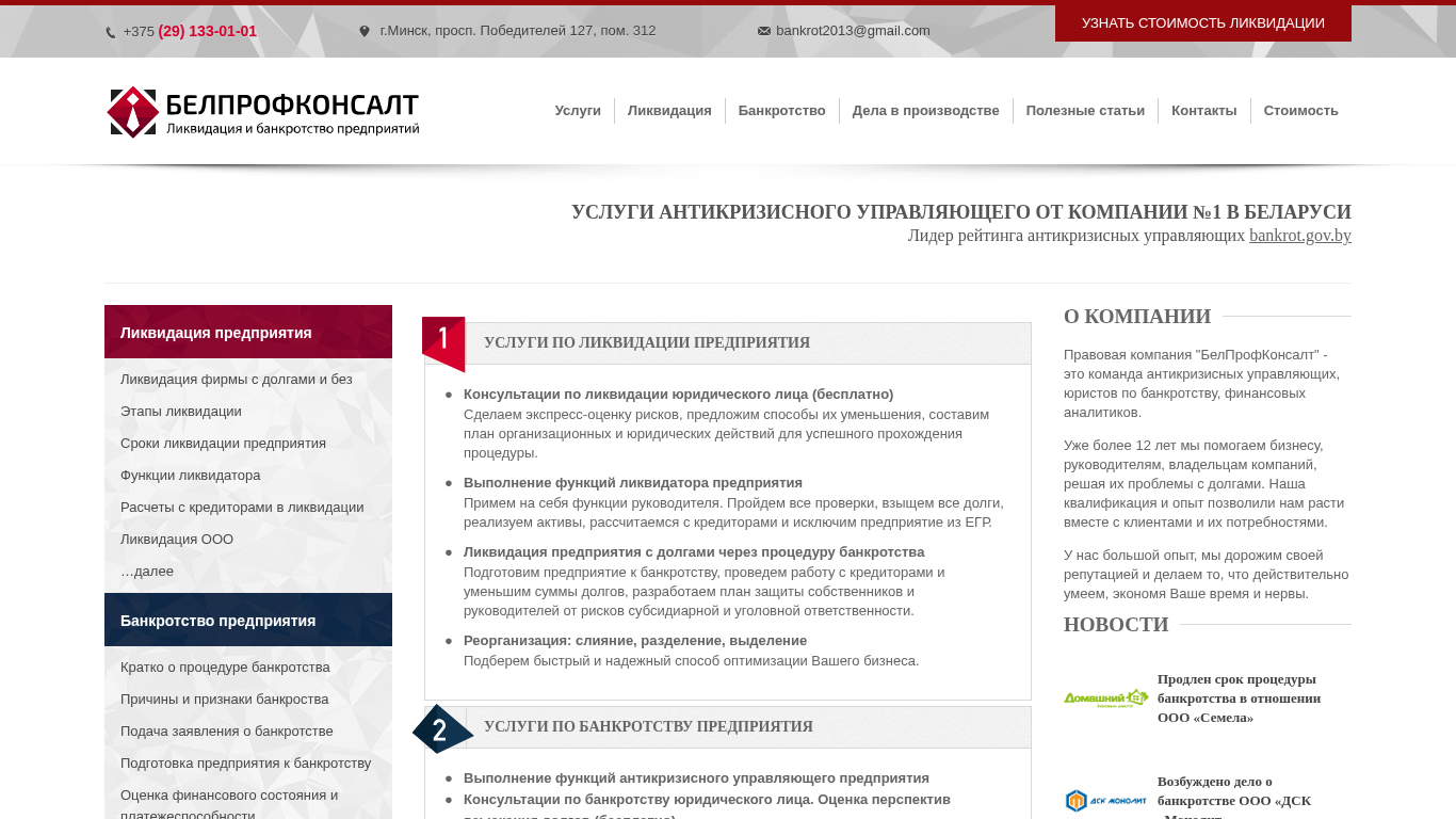 | Название / Заголовок | БелПрофКонсалт — Ликвидация и банкротство предприятий в Минске и Беларуси |