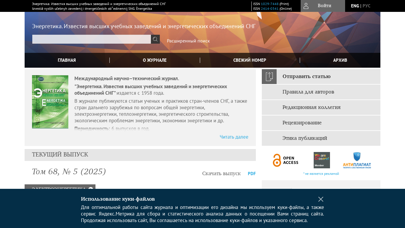 | SEO-описание | Международный научно-технический рецензируемый журнал "Энергетика. Известия высших учебных заведений и энергетических объединений СНГ" |