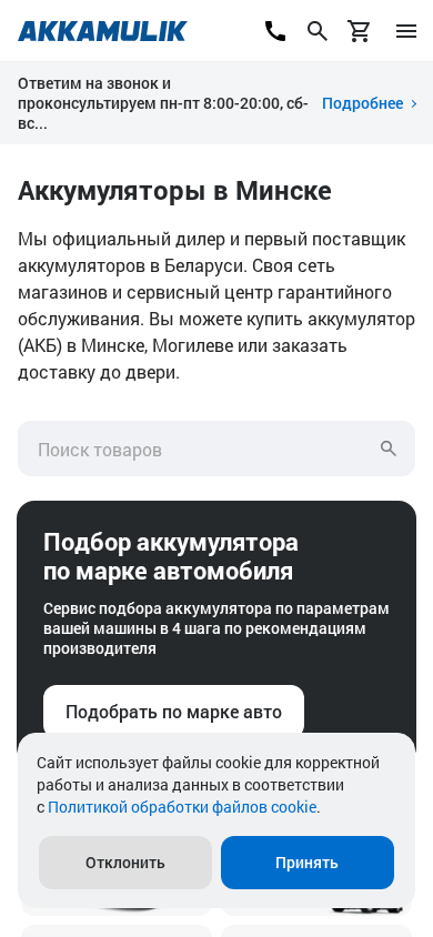 | SEO-описание | Продажа аккумуляторов для автомобиля с доставкой по Беларуси. Купить аккумулятор для авто в Минске. Принимаем старый АКБ в зачет, есть рассрочка. Скидки и акции при покупке. В каталоге более 5000 товаров с фото и отзывами покупателей. Официальная гарантия от производителя и сервисный центр, магазины и пункты выдачи. |