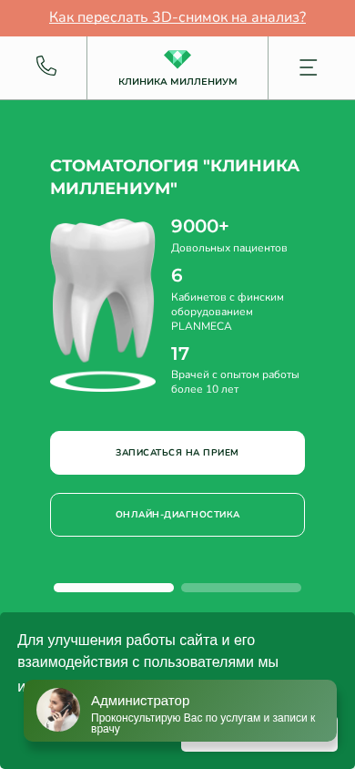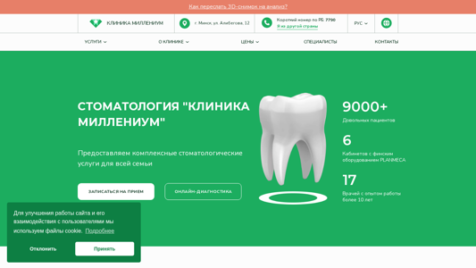 | AI-анализ | This online resource is a paid dental clinic named "Клиника Миллениум" located in Minsk, Belarus. The website offers solutions to various dental problems with Finnish equipment and guarantees on their work. The contact number for the clinic is +375 (17) 360-90-70. |