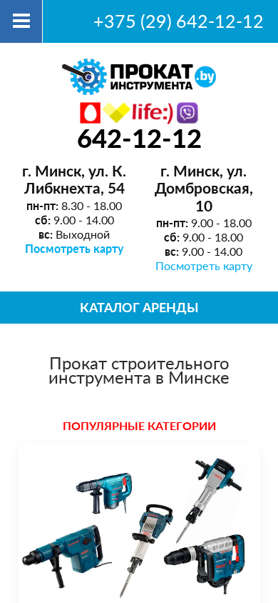 | AI-анализ | The website is dedicated to equipment rental services, specifically for tools, construction equipment, and electrical tools in Minsk, Belarus. The title of the website translates to "Renting Tools, Construction Equipment, and Electrical Tools for Rent in Minsk." The description provides a way to contact the company, but no actual contact information is given. The most frequently used keywords include "machines," "grinding machines," "cement," "saws," "pistols," "heating guns," "guns," "construction," "vacuum cleaners," "industrial," "gas," "saws," "garden," "hydraulic," "levels," "generators," "instrument," "diesel," "375," and "conditions." The website has a desktop and mobile version with different layouts. The desktop version features a logo on |