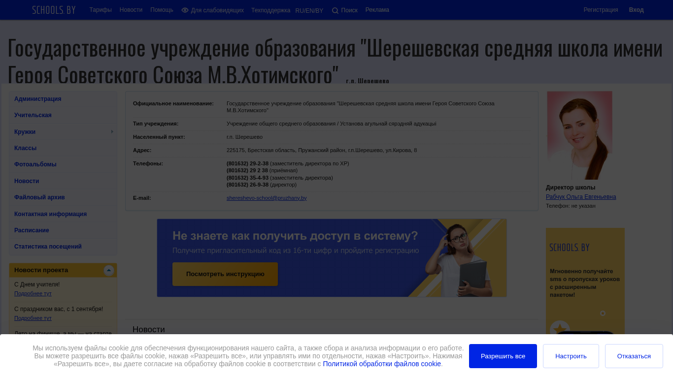 | Название / Заголовок | Государственное учреждение образования "Шерешевская средняя школа имени Героя Советского Союза М.В.Хотимского" |