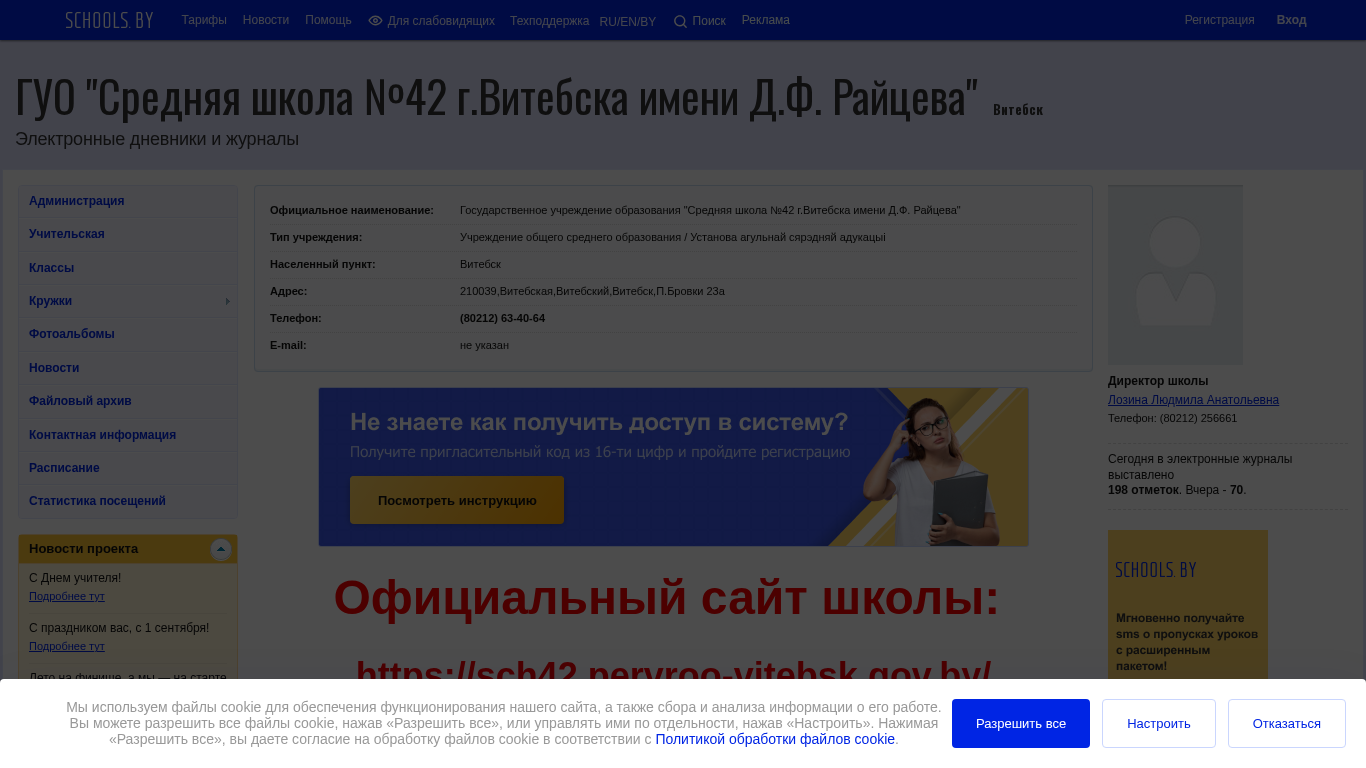 | Название / Заголовок | ГУО "Средняя школа №42 г.Витебска имени Д.Ф. Райцева" |