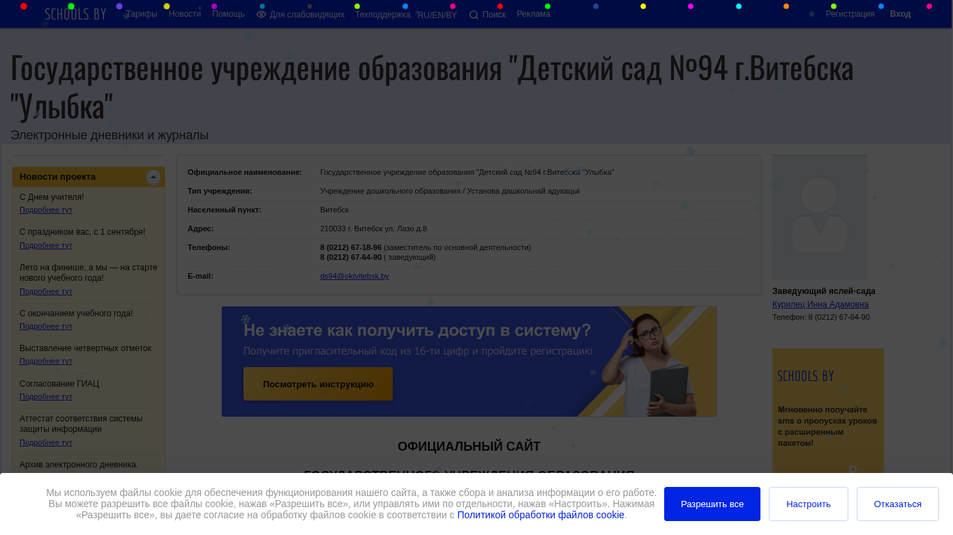 | Название / Заголовок | Государственное учреждение образования "Детский сад №94 г.Витебска "Улыбка" |